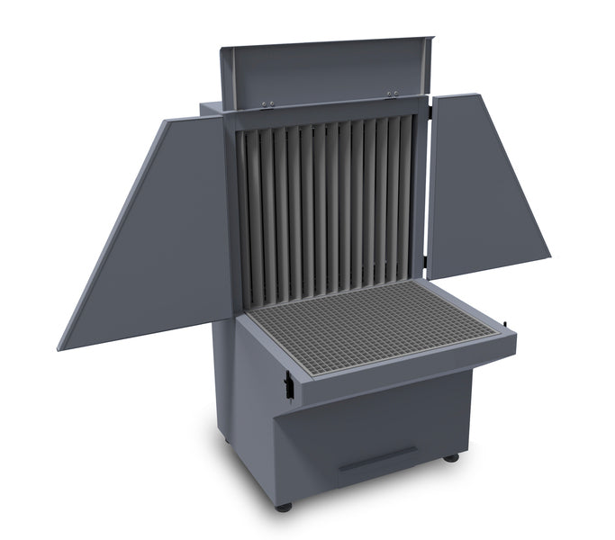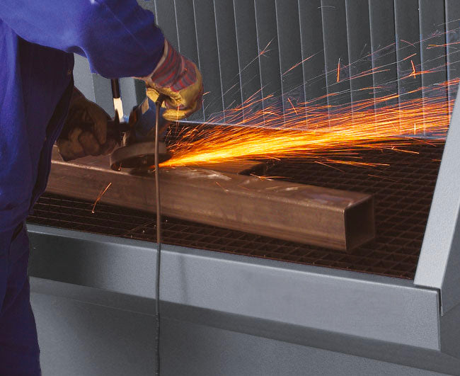 Il nostro banco di smerigliatura con aspirazione dell'aria a flusso discendente e posteriore, e con estrazione di scintille e fumi, rappresenta una soluzione pulita e sicura per l'uso industriale. Il banco può essere collegato a un sistema di aspirazione dell'aria centralizzato ed è disponibile in diverse dimensioni. Le pareti laterali insonorizzate possono essere ripiegate per la lavorazione di pezzi di grandi dimensioni.