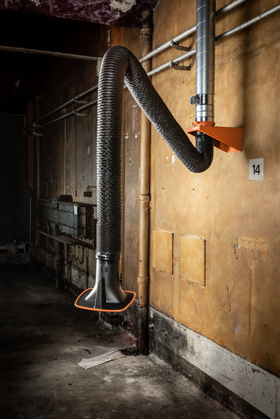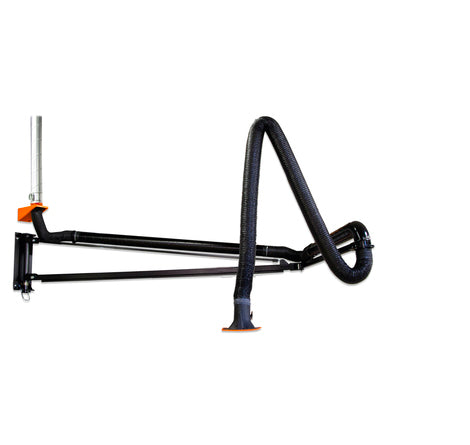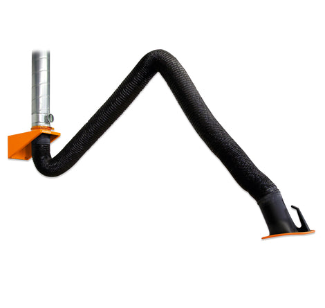 Il braccio di aspirazione KEMPER consente un ampio raggio d'azione. Può essere utilizzato per una singola postazione di lavoro, in combinazione con un aspiratore, o per più postazioni, tramite tubi collegati a un sistema di aspirazione e filtrazione centralizzato. Il braccio di aspirazione è progettato per un uso continuo ed è adatto a elevati livelli di fumo e polvere, come fumi di saldatura, gas, vapori, polveri leggere o fumi di scarico di veicoli a motore.